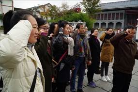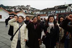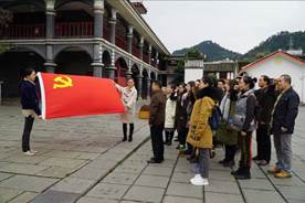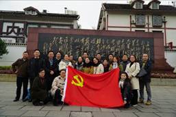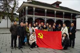 2018年11月17日数字媒体学院教师党支部一行20名党员赴贵州省遵义市接受理想信念教育,到遵义会议会址参观考察学习。在党总支书记彭海深、副书记钟佐彬带领和党支部书记尹敬齐的组织下,各位党员教师的积极参与,早上6:50分从重电苑出发到重庆西站,8:44分乘D1863动车,10:02分到达遵义,从遵义车站乘26路公交车到遵义会议会址。进入会址后,首先我们在遵义会议会址前集体合影留念,接着在遵义会议会址前党旗下,举起右手进行宣誓,重温入党誓词,不忘初心、牢记使命。随后参观了遵义会议会址和遵义会议陈列馆,使我们深受教育。