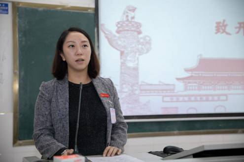 会议伊始,由主持人介绍嘉宾老师并清点到场学生代表人数,伴随着代表们热烈的掌声,本次会议正式拉开了序幕,随后全体起立齐唱国歌并由学管科长、团总支书记刘瑶致开幕词。