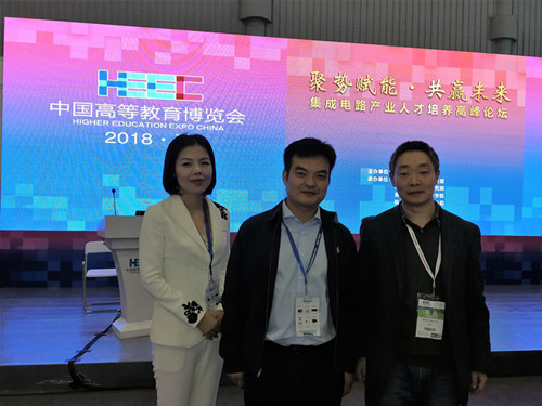 2018年10月19日,重庆电子工程职业学院微电子技术专业负责人林涛副教授应邀参加在成都新世纪城国际会展中心举行的集成电路产业星空(中国)高峰论坛。由西安电子科技大学主办、杭州朗迅科技有限公司等发起的本次论坛汇集了国内开设微电子技术的二十余所本专科院校的专家教授,同行们就微电子技术的产业发展趋势、星空(中国)现状、产教融合模式、资源库建设等进行了深入探讨。