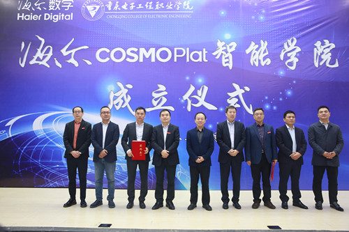 2018年10月15日,重电-海尔COSMOPlat智能学院成立仪式在重庆电子工程职业学院博远厅隆重举行。来自重庆市经信委、重庆市人社局、海尔集团、重庆电子工程职业学院等单位嘉宾及我校师生代表共同见证了这一历史时刻。本次活动由重庆电子工程职业学院副校长龚小勇教授主持。