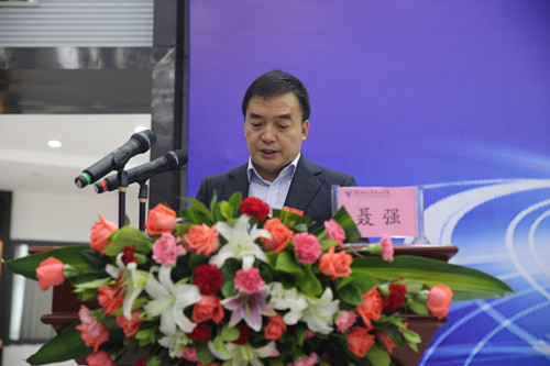 重庆电子工程职业学院校长聂强教授致欢迎词。聂校长代表学校向百忙之中来参加这次成立仪式的各位领导、来宾表示热烈的欢迎和诚挚的感谢,他展望了新学院未来发展的宏伟蓝图并给予美好祝愿。