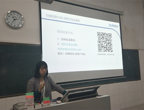 9月27日,成都卡德智能科技有限公司、重庆高迈工贸有限公司、中邮建技术有限公司受邀来我院举办专场宣讲和招聘会。下午两点,三家用人单位如期而至,招聘会场7-205教室里也坐满了前来参加宣讲会和面试的毕业生们。