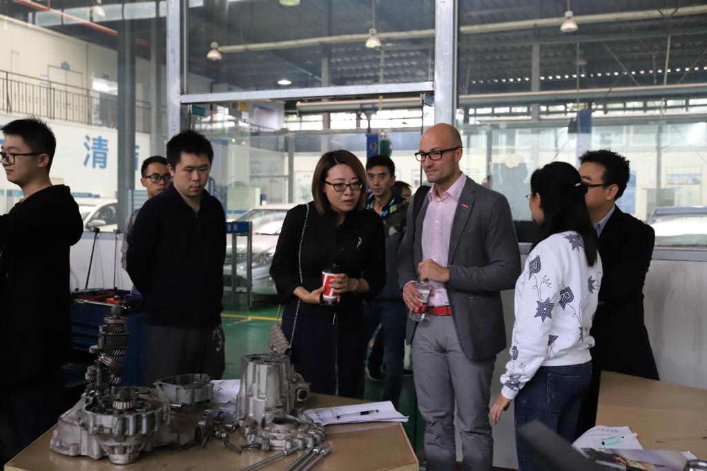 9月12日上午,德国手工业协会亚历山大·拉德维希先生,北京德信合力教育科技有限公司何薇薇董事,刘宇总经理等一行到我校就共建中德(西南)职业培训学院进行洽谈。他们首先参观了学校汽车工程、机电工程和物联网应用中心,进一步加强了对我校的实训实践基地的了解。