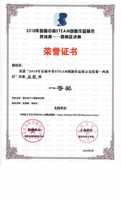 2018年5月,由中国电子学会支持,重庆市科学技术协会指导,重庆市电子学会主办,重庆大学、重庆邮电大学、重庆师范大学共同承办的2018首届中英STEAM创新作品展示竞技赛——西南赛区决赛在重庆邮电大学举行。