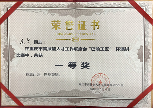 第99个五四青年节下午,重庆市“巴渝工匠”杯演讲比赛决赛在重庆机械技师学院成功举办。市直有关部门领导、职业院校师生代表500余人在现场观摩比赛,我院副教授毛弋同志获得比赛一等奖。
