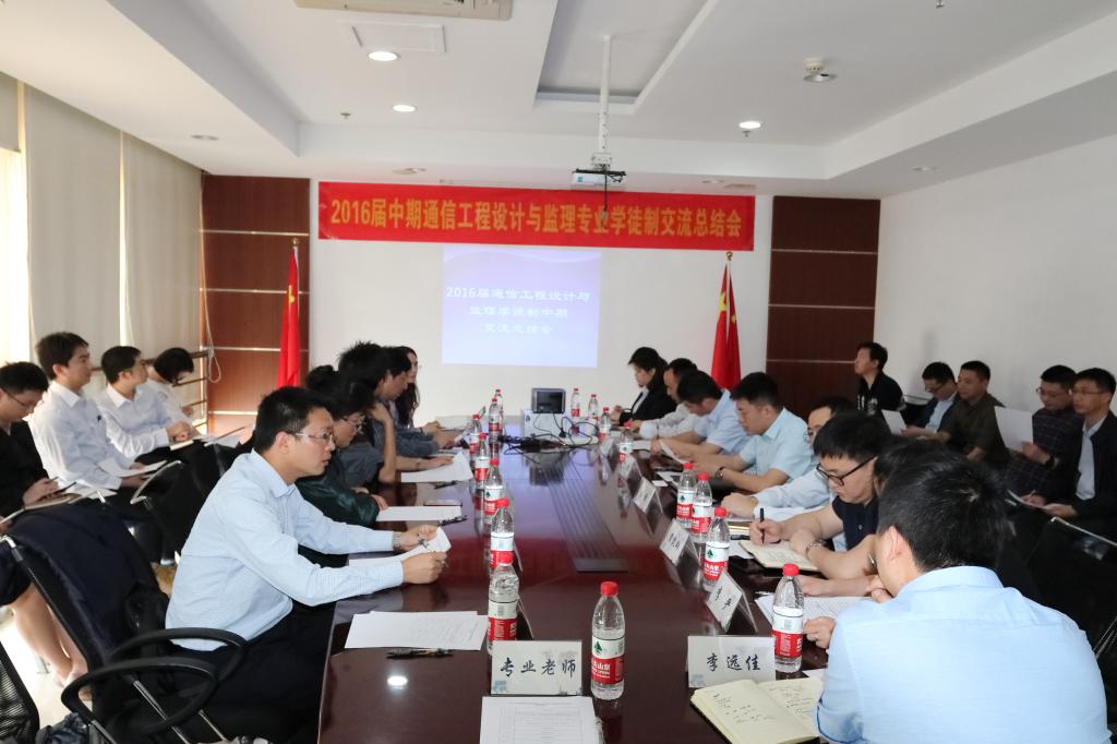2018年4月10日,通信工程学院通信工程设计与监理专业学徒制中期检查交流会在重庆鸿捷通信科技发展有限公司举行。教务处副处长叶勇教授,通信工程学院副院长陶亚雄教授、王俊峰教授,通信工程设计与监理专业全体教师、鸿捷公司董事长杨昌黎、各部门经理,以及全体学徒制带徒师傅出席了会议。