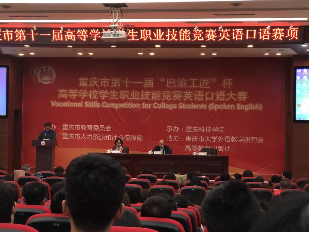 3月31日,2018年“巴渝工匠”杯重庆市第十一届高等学校学生职业技能竞赛英语口语大赛在重庆科技学院举行。重庆市教委高教处处长蒋后强、重庆市大学外语教学研究会副会长欧玲等领导和嘉宾出席了开幕式,来自重庆地区的55所高等学校的69名选手参加了比赛。