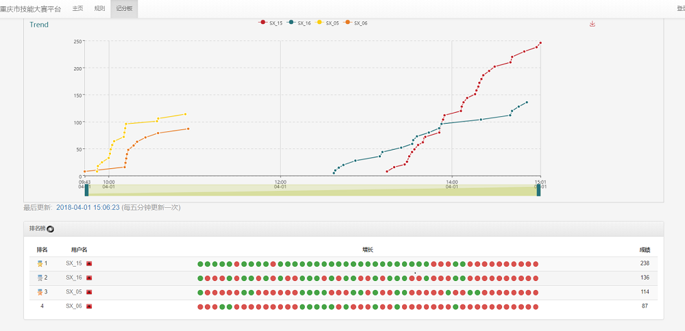 参赛队伍成绩排名实时显示