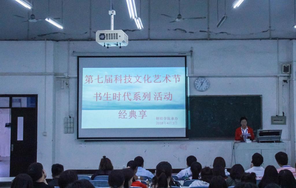 2018年4月3日晚7点,由财经学院承办的重庆电子工程职业学院第七届科技文化艺术节书生时代系列活动之“经典享”演讲比赛在北区9212准时举办。出席本次活动的嘉宾有财经学院党总支书记毛卫平书记、辅导员余秀平、刘建、周传波和范译文老师。