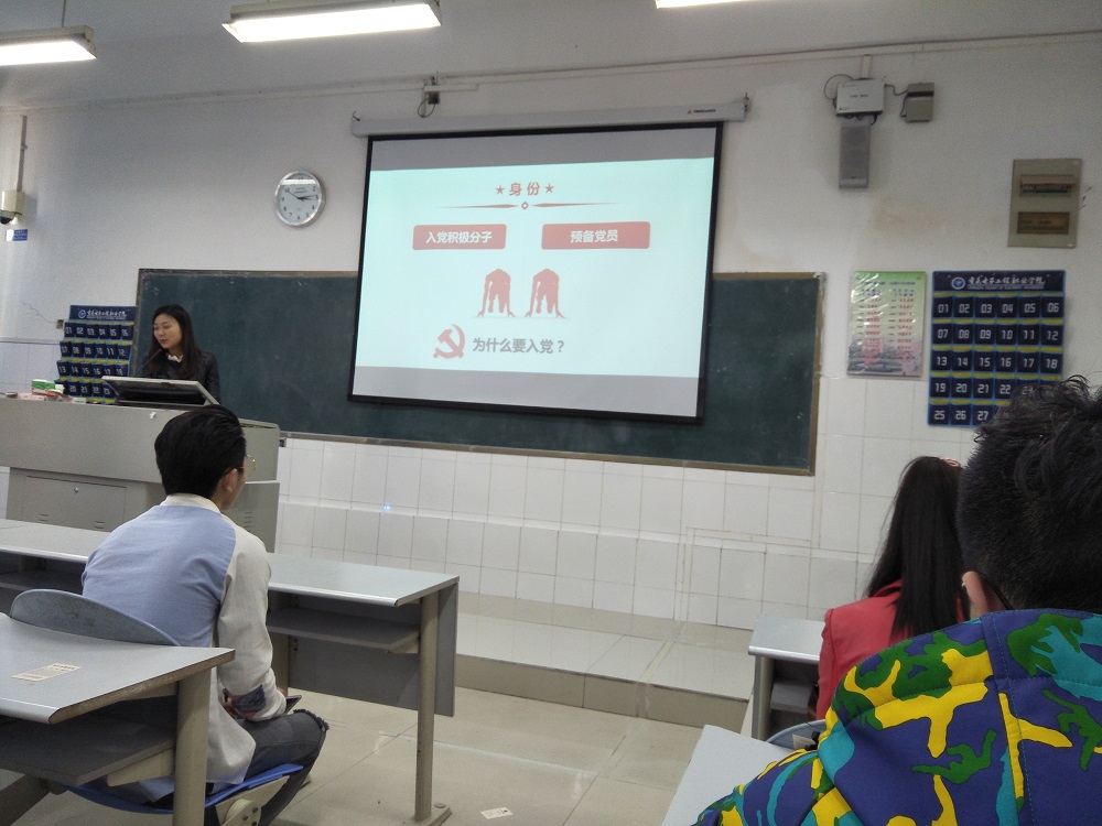 接着,黄老师向大家介绍了十九大报告提出的“八个明确”、“十四个坚持”,让同学们进一步了解在新时代我们要坚持和发展什么样的中国特色社会主义,怎样坚持和发展中国特色社会主义。并重点阐释“八个明确”中明确中国特色社会主义最本质的特征是中国共产党领导,“十四个坚持”中坚持全面从严治党这两点。在“入口关”越来越严格的情况下,作为入党积极分子,大家要继续高标准要求自己,积极向党组织靠拢。作为党员,要加强自身的政治、思想、组织、作风、纪律等建设,做“四讲四有”的合格党员。