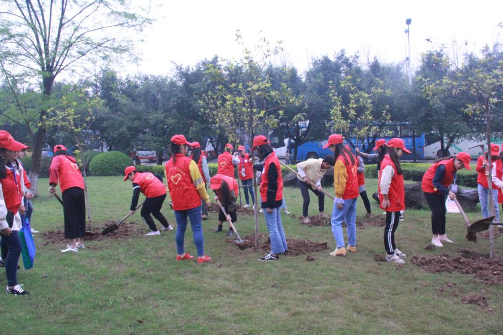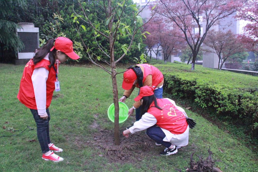 上午10点,财经学院青年志愿者服务支队的同学们整队出发,来到指定的植树地点。为了保证存活率,志愿者们还请来了学校的园丁叔叔的指导。同学们亲手挖坑、栽树、填埋,浇水,干得满头大汗,不亦乐乎。栽种过程的艰辛让志愿者们认识到美好环境的来之不易。同学们还在自己栽种的树下一起宣誓保护环境,做校园的绿色大使。并将财经学院牌子挂到自己栽种的树上,承诺一届一届青年志愿者要照顾好我们种下的树,为整个活动增添人文色彩,这些必将成财经学院志愿者同学们的永远的记忆。