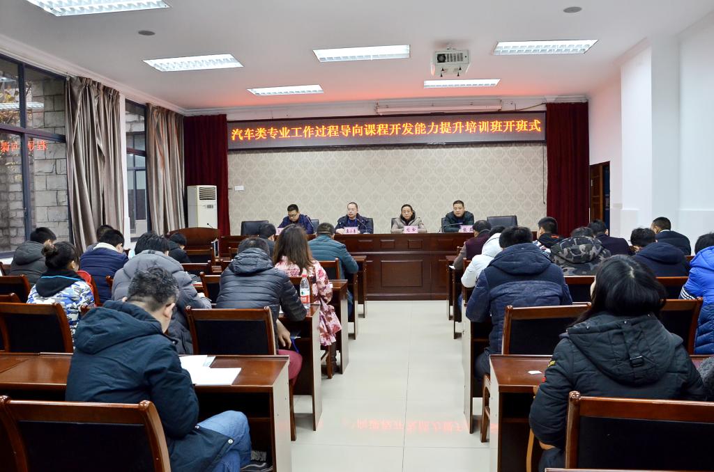 1月15日上午,重庆市2017年度中职教师市级培训项目——汽车类专业工作过程导向课程开发能力提升培训班在我校南校区1-101会议室顺利开班。学校副校长龚小勇、培训与继续教育学院院长刘松、汽车工程学院副院长陈志军,以及培训班班主任、来自全市中职学校的参培学员参加了开班式。开班式由培训中心主任张亚主持。