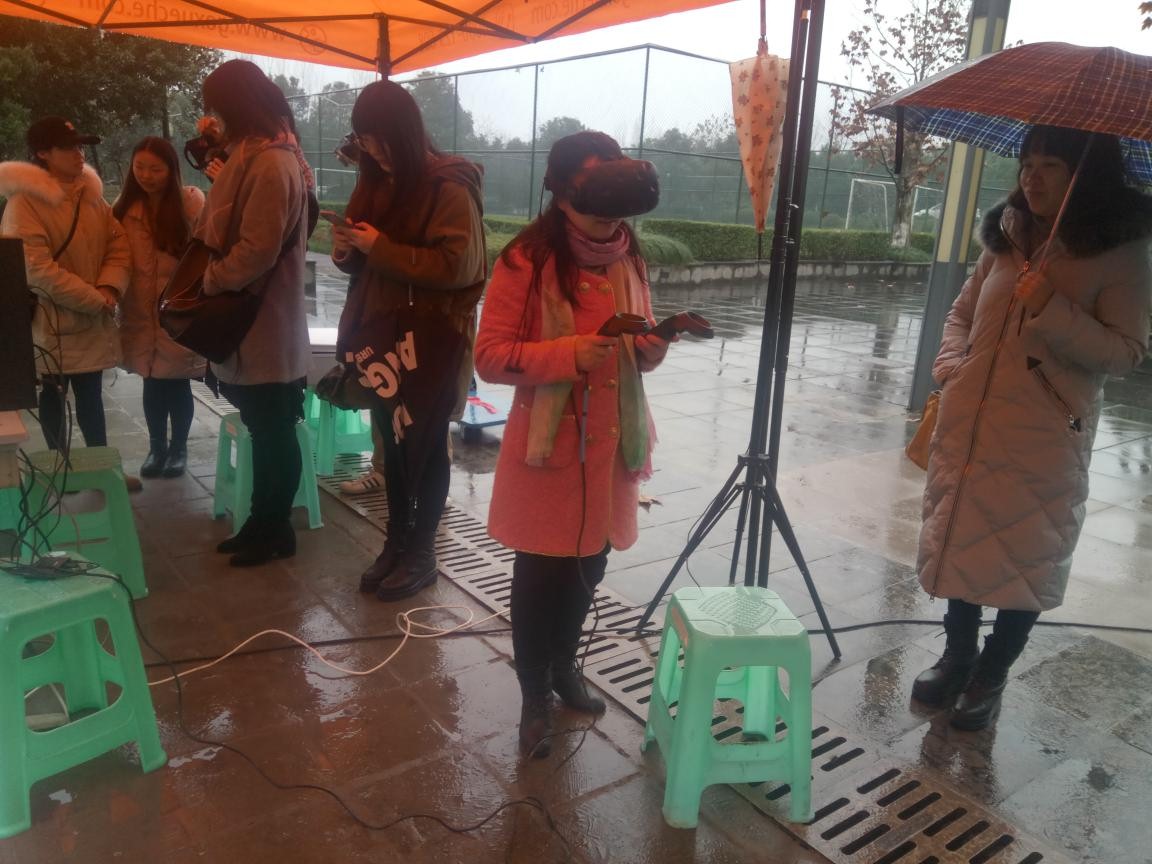 同学们都积极参与到这次活动中来,体验虚拟现实的奇妙之处,积极分子也很热心的向同学们讲解设备的用法,以及教同学们如何使用VR设备,即使天公不作美,下着雨,也没有浇灭同学们对虚拟现实技术的热情。