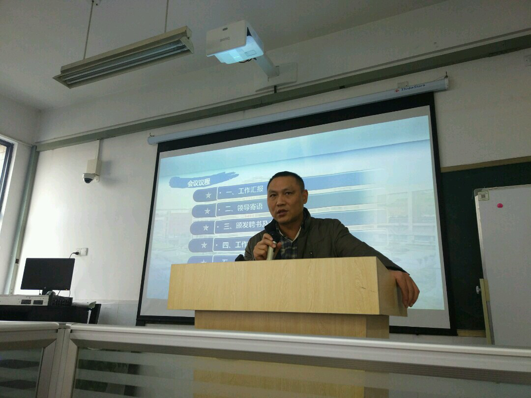 此次会议由朱堂勋老师主持,设有六项议题:工作汇报、领导寄语、颁发聘书及合影、工作室导师分工、成员代表讲话及管理人员选举、工作室工作计划。