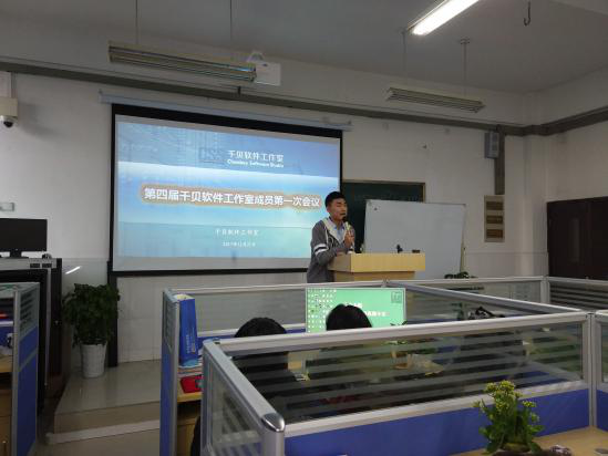 第四届千贝软件工作室成员代表赵朝权和龚南科同学,就自己的想法和学习目标与成员们做了分享,大家表示:有信心和毅力在工作室中得到全方位锻炼和技能提升。为了更好的为成员们服务,会议还选举出罗莉、陈海燕同学为工作室管理员,与导师们共同协助管理工作室。在朱老师安排了工作计划后,第四届千贝软件工作室成员第一次会议正式结束。