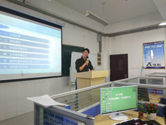 首先由朱堂勋老师剪短的介绍了工作室创建目的、以往工作和成绩以及对第四届成员的要求。接着软件学院党总支书记王文对工作室取得的成绩给予了充分的肯定,并要求工作室师生再接再厉,发挥团队精神,严格管理,以取得更大的成绩。