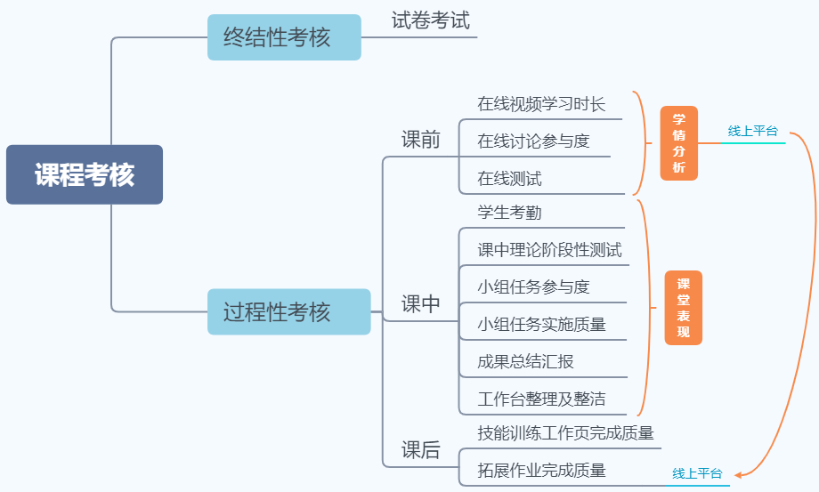 《电工与电路基础》课程的考核结果将作为2021级电子信息类学生专业分流的重要依据之一,课程考核的科学性及全面性显得至关重要。结合课程的改革基础和教学实施情况,统一过程性与终结性相结合的考核方式。通过终结性考核关注学生对理论知识的系统性掌握情况;通过关注学生的学习过程,促进混合式教学效果的提升;通过在线学习、课前作业、课堂表现、课后作业多个维度综合考察学生的学习能力和学习效果。