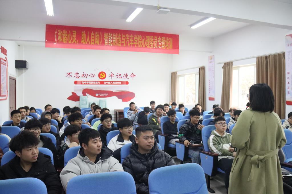 为了扎实推进我院大学生心理健康教育四级网络建设,充分发挥出班级心理委员在心理健康教育工作上的作用,提升心理委员的整体素质,智能制造与汽车学院于2021年12月15日在机电辅楼B204组织开展了本次班级心理委员培训工作。