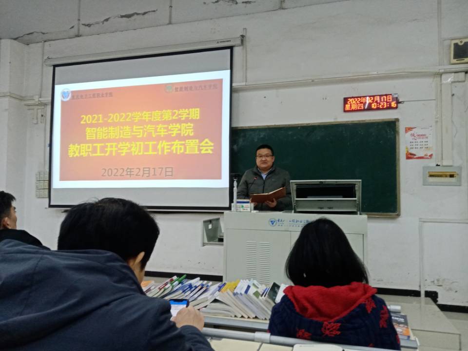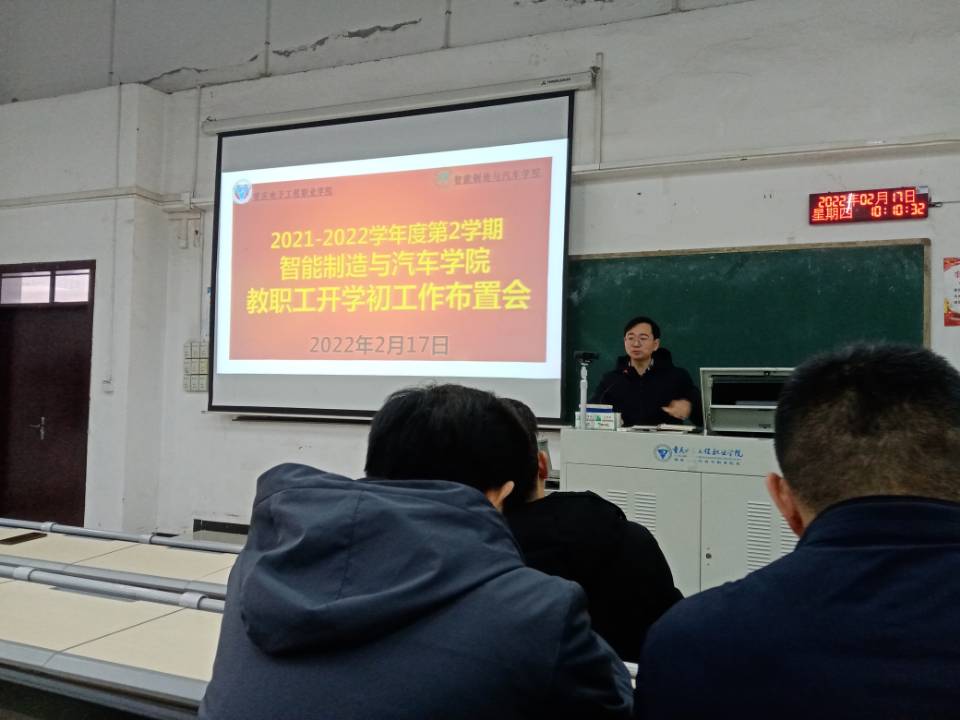 2月17日上午,智能制造与汽车学院在9-212教室召开了2022年春季学期开学工作布置大会。会议由封明亮主任主持。