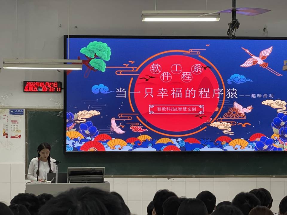 当一只幸福的“程序猿”活动一共有5个环节:软件工程系教师致辞、游戏专业都不赖之你说我猜、华语经典再现之猜歌名、程序员的浪漫之猜诗句、颁奖仪式。