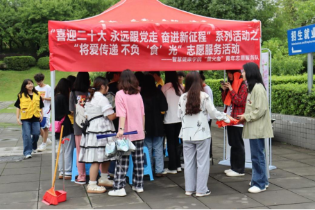 为贯彻落实习近平总书记关于“厉行勤俭节约 反对铺张浪费”的重要指示精神,进一步增强当代青年学子节约粮食、爱惜粮食的意识。2022年5月26日,智慧健康学院“萤火虫”青年志愿服务队开展“将爱传递,不负‘食’光”志愿服务活动,引起全校学生的热烈反响。