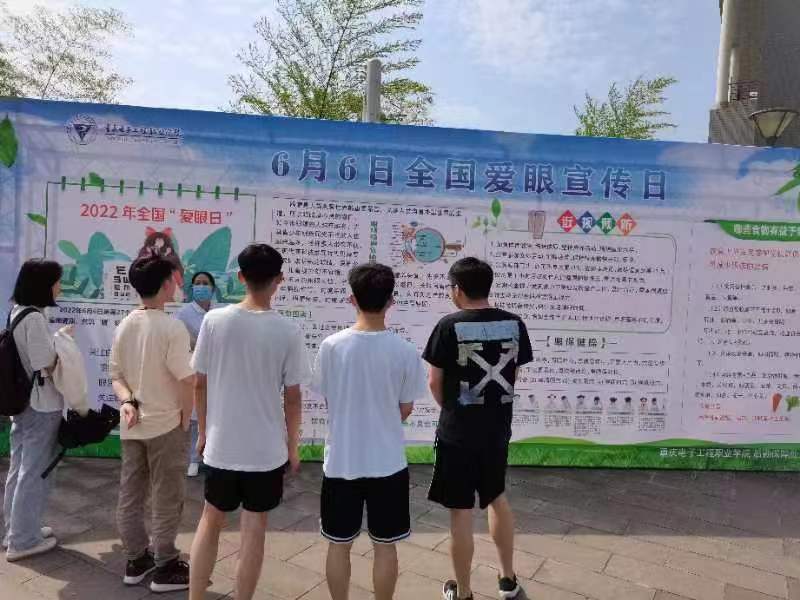 1.在学子广场放置第27 个全国“爱眼日”宣传展板1个,并发放“爱眼日”宣传语共计263份,对全校师生进行眼健康科普知识宣传,倡导健康生活方式,引导科学就医及近视的防控;