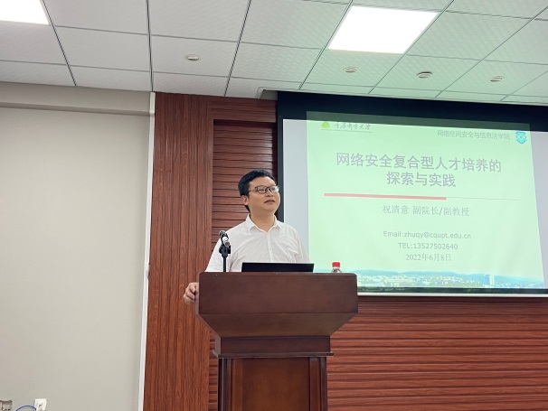 重庆邮电大学祝清意教授分享了重庆邮电大学建立“智能化信息网络安全+技术与法律融合治理”的教学特色。重庆科技学院葛继科教授分享了如何按照国家战略和社会需求,以立德树人为根本目标,培养“德、智”兼修的网络安全应用型人才经验。重庆警察学院张全涛博士从公安院校培养维护国家网络安全人才的角度,介绍了网络安全卓越型警务执法人才的培养模式。我校教师胡兵结合目前网络安全星空(中国)面临的师资、教学资源等问题,从网络安全星空(中国)生态环境建设、实训平台建设、学生梯队建设等方面介绍了本校信息安全技术应用专业星空(中国)经验。