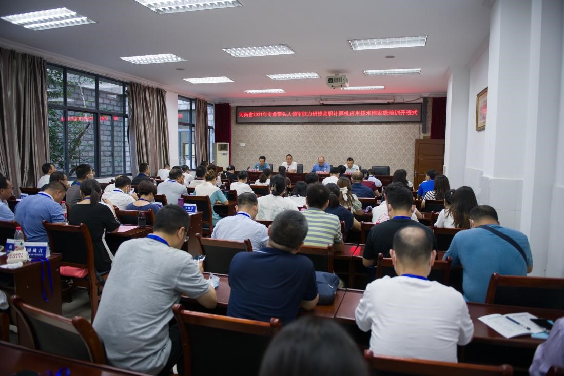 7月25日上午,由河南省教育厅主办,我校国培基地承办的河南省2021年专业带头人领军能力研修中职计算机应用、高职计算机应用技术国家级培训开班式在我校顺利举行,培训与继续教育学院副院长李晓斌,教学班主任郑孝宗,以及来自河南省职业院校的85名学员参加开班式,国培基地办副主任张亚主持开班式。
