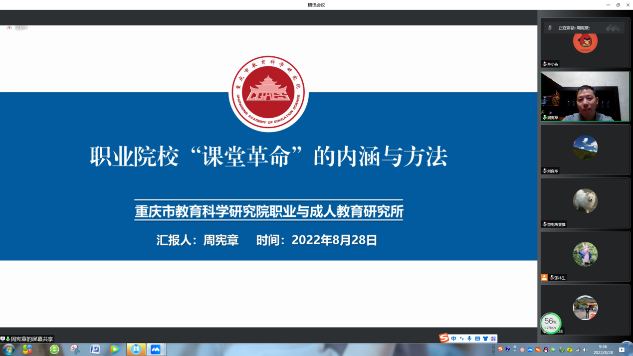 为了推动学院三教改革走实、走深,提升学院课堂教学质量,助力学院的高质量发展,通信工程学院特邀请重庆市教育科学研究院研究员周宪章为全院教师作主题为“职业院校‘课堂革命’的内涵与方法”专题讲座。本次讲座由于疫情和天气的原因于2022年8月28日上午9:30在线开展,由刘良华副院长主持,通信工程学院全体教师参加。