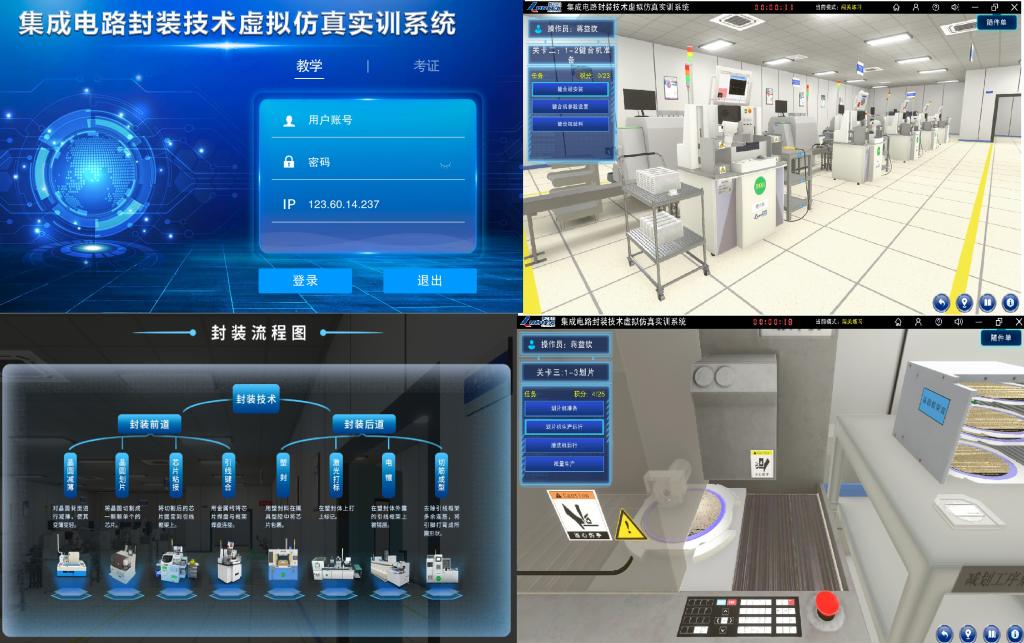为克服疫情的影响,此次实操考核采用“集成电路封装技术虚拟仿真实训系统”进行。该虚拟仿真实训系统是我校与朗迅科技等共同开发的一套集教学、实训、考核为一体的虚拟仿真系统。采用虚拟仿真的形式进行考核,不仅满足了1+X证书考核和疫情防控的要求,而且其实践性较传统的方式更加全面、建设成本更低、教学成效更高。