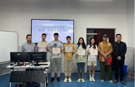 赛后,智慧健康学院党政科科长刘小瑞、健康技术系系主任赵鹏举为获奖同学颁奖并致辞,希望竞赛能促进各专业学生编程能力的提升,磨练出一批坚毅勇敢、团结友爱、志向远大、能力卓越的优秀科技人才。