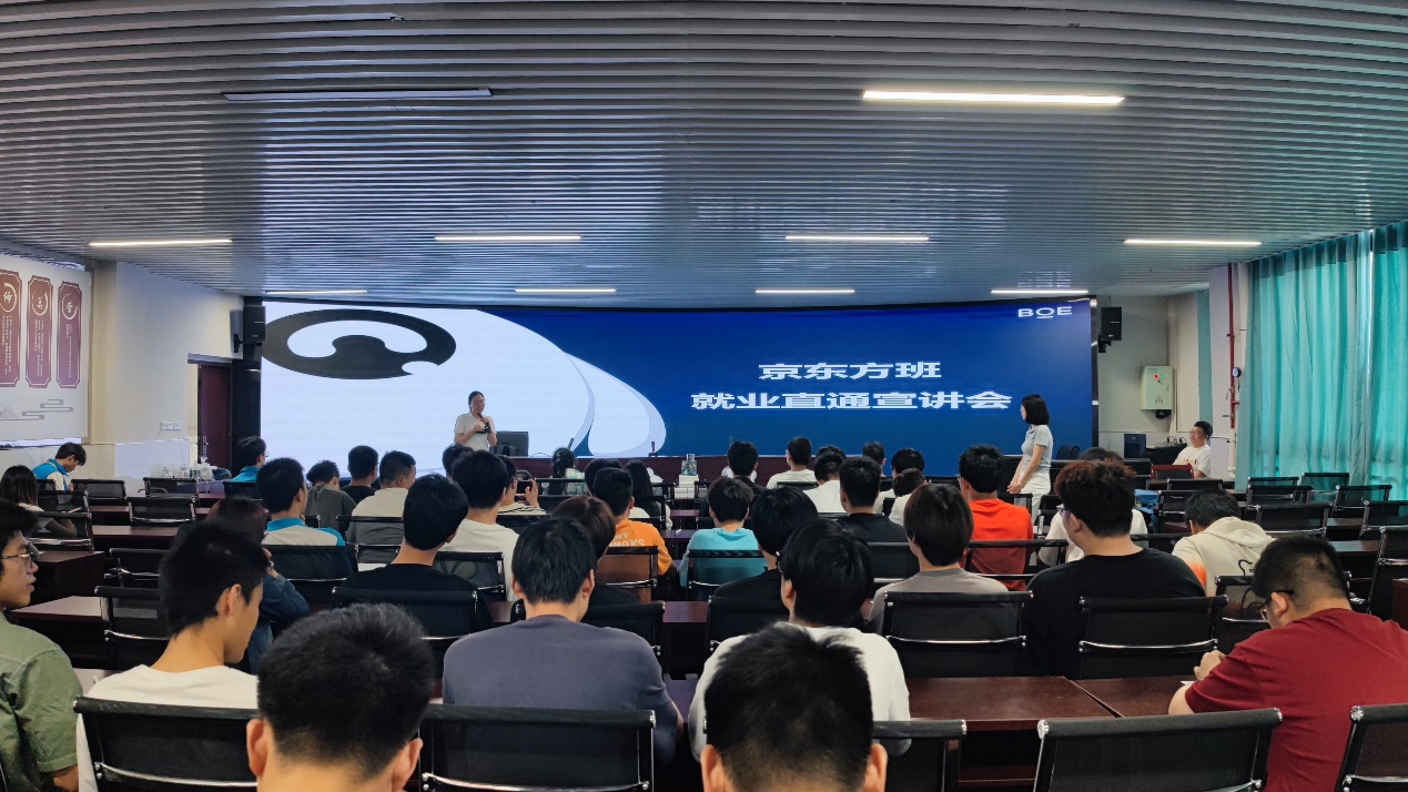 为进一步推动学习贯彻习近平新时代中国特色社会主义思想主题教育走深走实,贯彻落实二十大报告“就业优先战略”精神,提前谋划有效推进智能制造与汽车学院2024届毕业生的就业工作,帮助企业培养未来能有效胜任相关工作岗位的优秀人才。2023年6月8日,智能制造与汽车学院在16-203举办了京东方定点班招聘宣讲会。