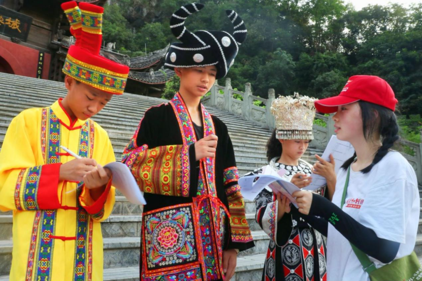 实践队队员在彭水县蚩尤九黎城开展推普调研活动