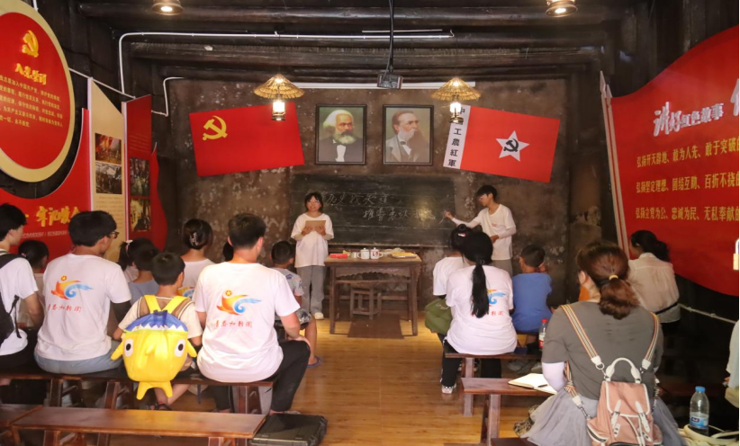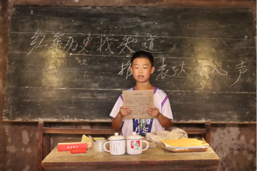 “红军不怕远征难,万水千山只等闲。五岭逶迤腾细浪,乌蒙磅礴走泥丸……”红军街内的黄家坝新时代红色基因传习所内传来稚嫩又坚定的童声。