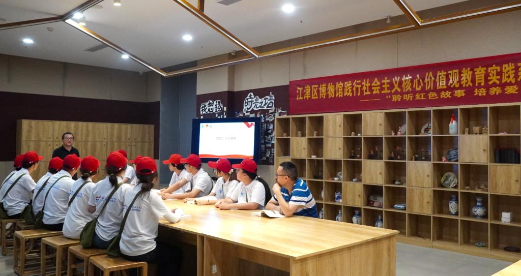 和煦的晨光辉映在路边,微风拂过重电“星火”三下乡社会实践团的“小红帽”们的脸庞,实践团成员们怀揣着期待已久的心情抵达重庆市江津区江津博物馆。