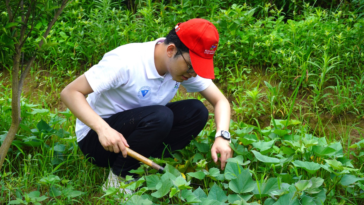 悠悠夏日长,实践在路上。7月7日上午,实践团成员们在当地农民伯伯的带领下来到一片绿油油的红薯田,对农作物旁的杂草进行清除。成员们认真聆听农民伯伯讲解除草时的注意事项,一是要注意安全,避免被蚊虫叮咬;二是除草时要细心,避免把杂草和红薯藤一起拔出来。拔草其实很难,要连根拔起,不伤土质,不伤庄稼……