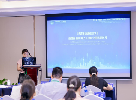会议遴选5门课程进行说课程,我校聂增丽老师的《5G移动通信技术》有幸入选,在“说专业•说课程•说专业群•说教材•说教学模式”环节,汇报题为“中文+职业技能”背景下高职院校《5G移动通信技术》双语课程建设,围绕“中文+职业技能”复合课对接专业能力、岗位能力、课程目标、教学设计变革、课程教学团队、教学资源重构与运用、课程应用与特色、教学评价等内容。